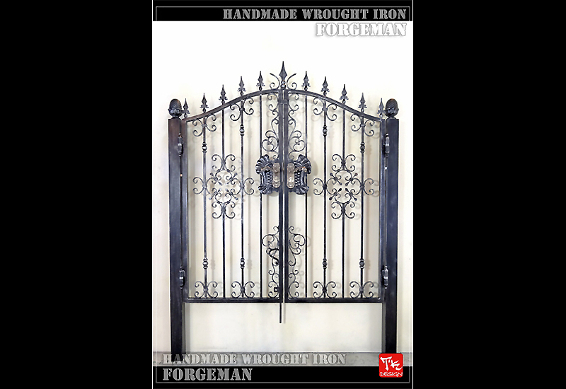 #1208|アイアン製スイング門扉<h3>クラシックな格子デザインのロートアイアン門扉</h3>