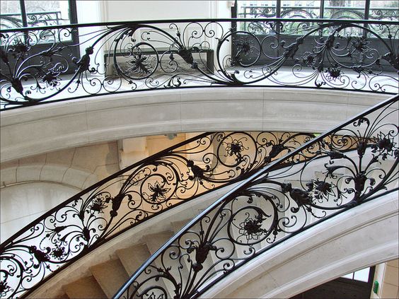 精巧に描かれた花や葉の装飾が魅力的な、豪華なデザインのアイアン製階段手すりフェンスです。ブラック(艶有り)のカラーリングが高級感を一層際立たせ、存在感溢れる仕上がりとなっています。空間に優雅なアクセントを与えることで、豪華さが一層引き立てます。
